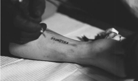 “The tattooing has taken only seconds, but Lale’s shock makes time stand still. He grasps his arm, staring at the number. How can someone do this to another human being? He wonders if for the rest of his life, be it short or long, he will be defined by this moment, this irregular number: 32407.”